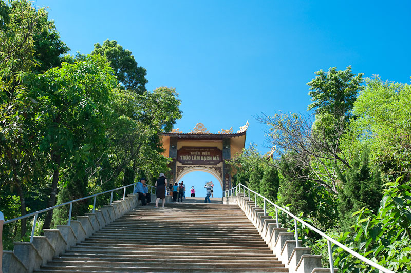 Thuyền (ghe) cập bến, quý khách bắt đầu chinh phục 172 bậc tâm cấp bằng đá và chiêm ngưỡng cổng tam quan Thiền Viện Trúc Lâm Bạch Mã cao vút, uy nghi.