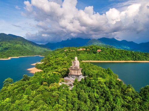 - Ngắm nhìn Tượng Thích Ca Mâu Ni khổng lồ giữa núi Linh Sơn, bao quanh là Hồ Truồi.