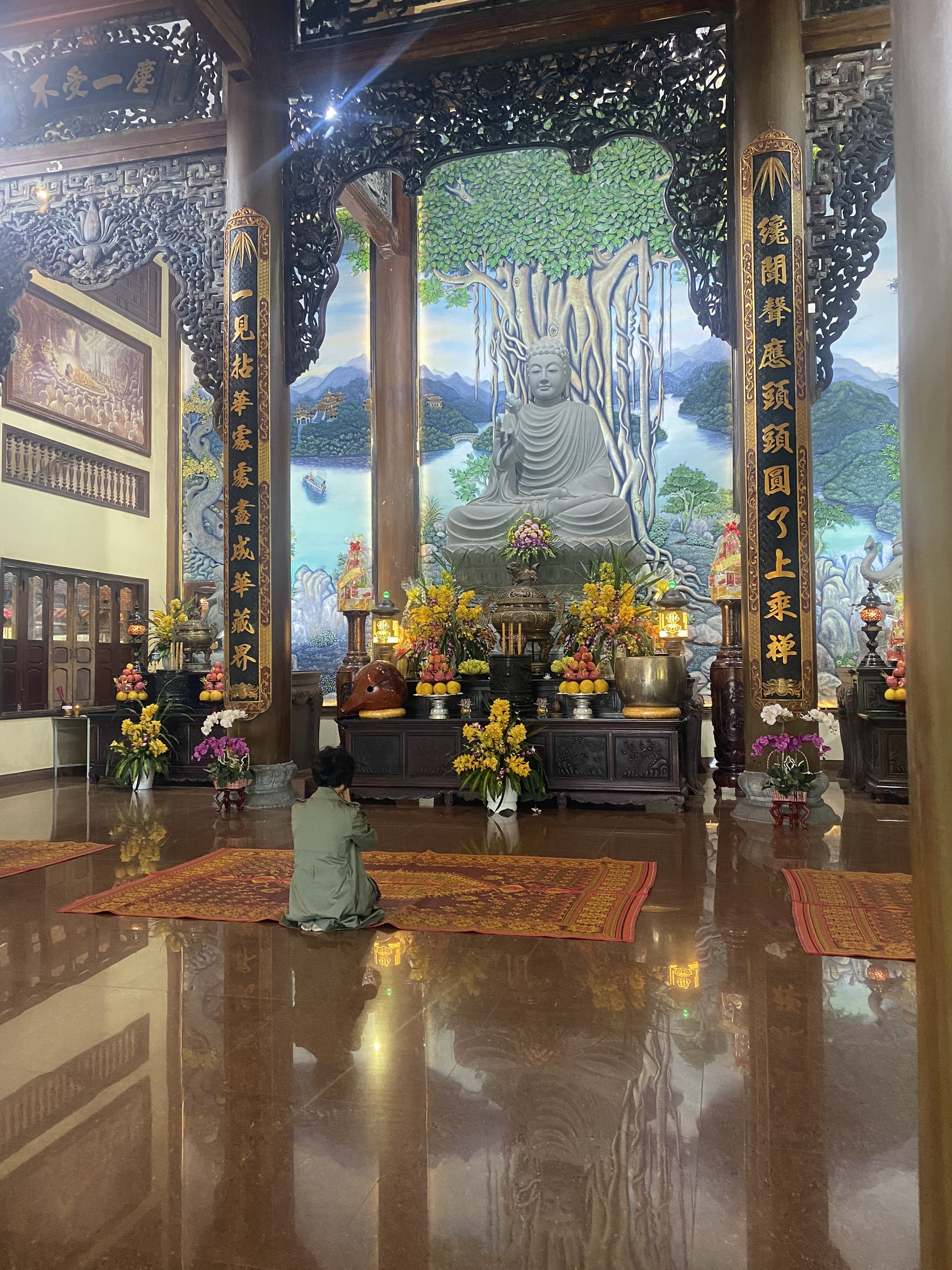 Viếng Chính Điện của Thiền Viện và chiêm bái bức tượng Phật Tổ khổng lồ cũng như bức tranh vẽ về cuộc đời của Phật Tổ từ lúc sinh ra cho tới quy y và Nhập niết bàn.